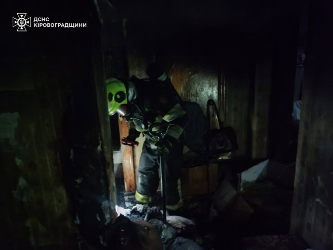 В Александрии ночью горела квартира в пятиэтажке. На пожаре бойцы ГСЧС спасали троих женщин.